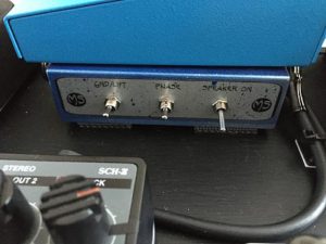 Nel cuore del sistema c’è il “Magic Box” realizzato in collaborazione con il geniale Matteo Spiro. Questo box, a seconda del sistema di amplificazione a disposizione, mi permette di decidere il routing del segnale senza stravolgere il cablaggio. Posso scegliere di andare su un solo Ampli, di andare su due Ampli sdoppiando il segnale, oppure azionando una levetta (speaker on) mandare sul primo Ampli il suono dry e sul secondo solo il wet del Flint e del Flashback. Il suono che va nell’entrata Speaker del box viene preso tramite un cavo di potenza dall’uscita External Speaker di un qualsiasi Fender Blackface.